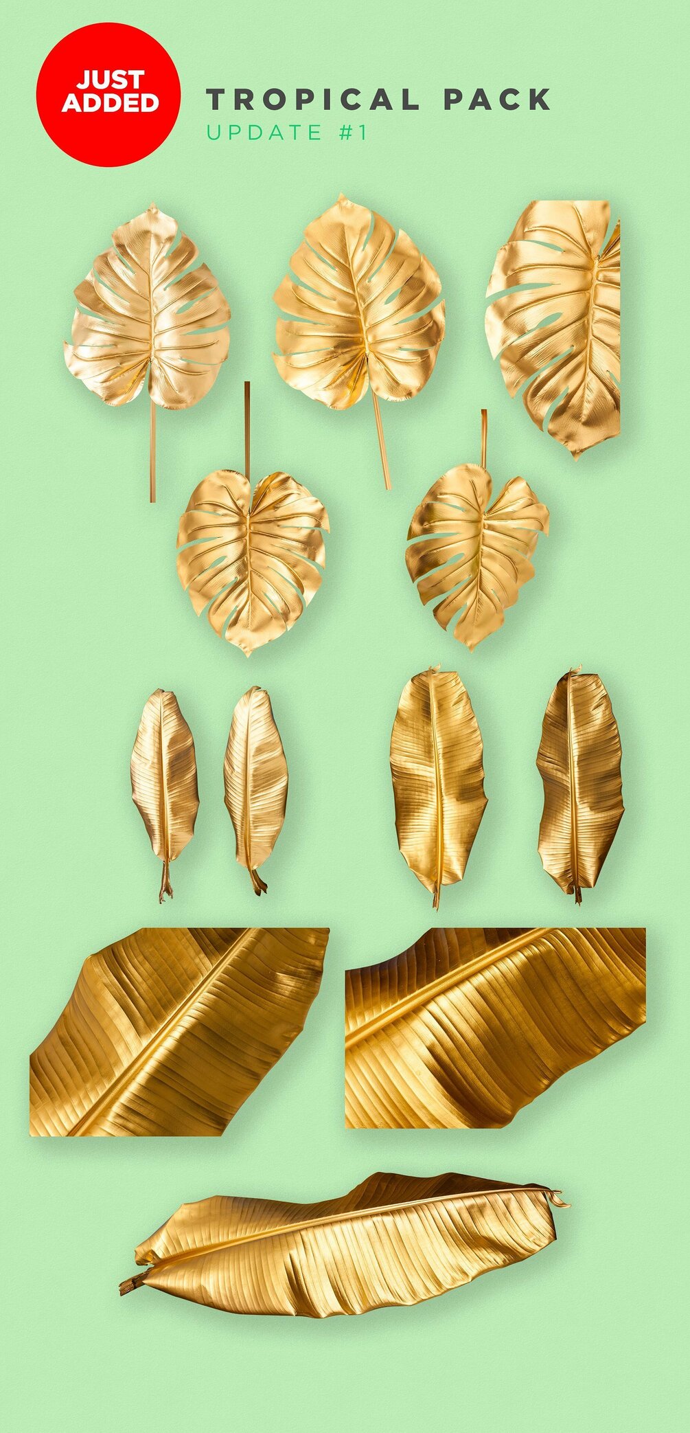 - Added 12 New tropical leaves the collection, includes gold, silver and rose gold options.